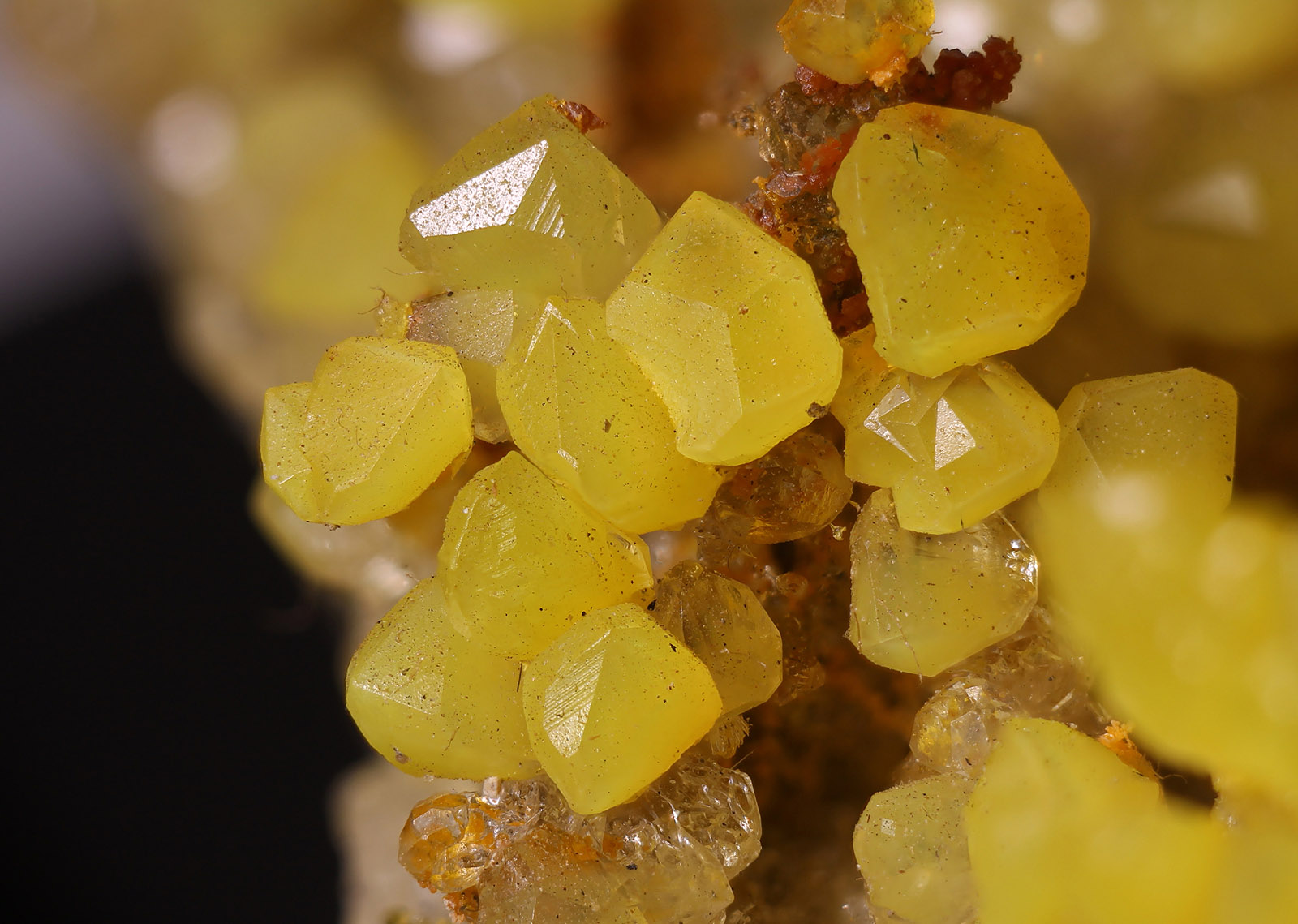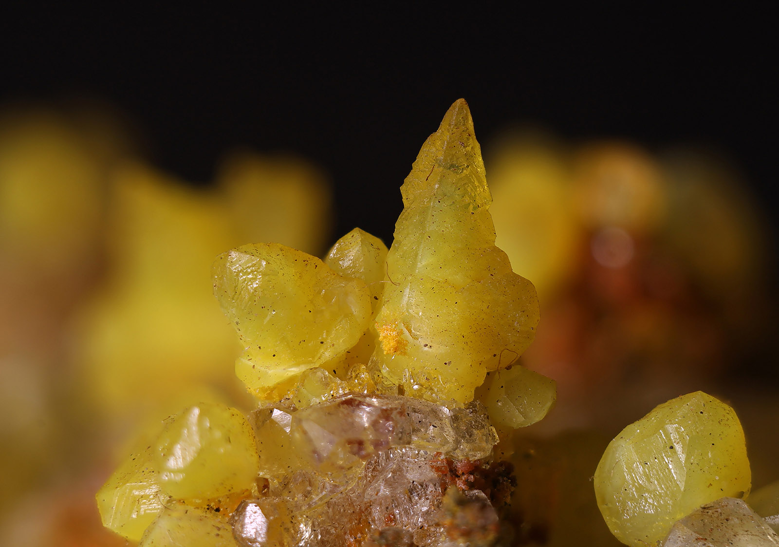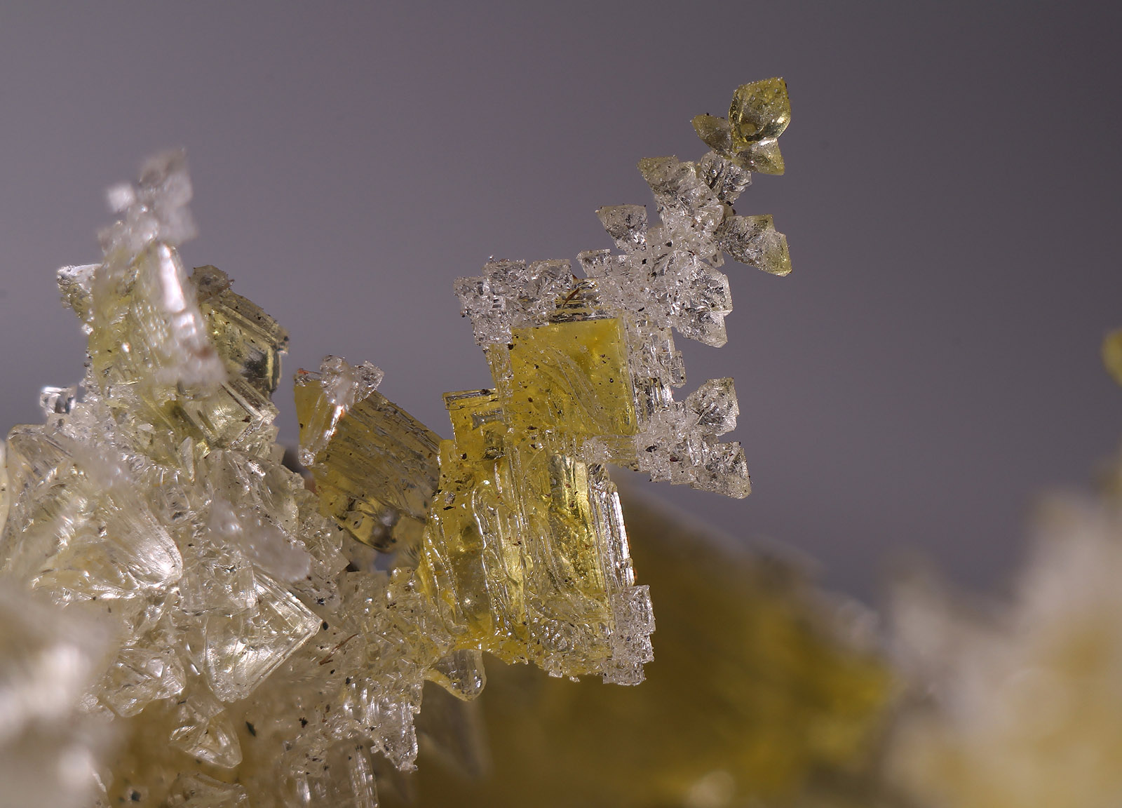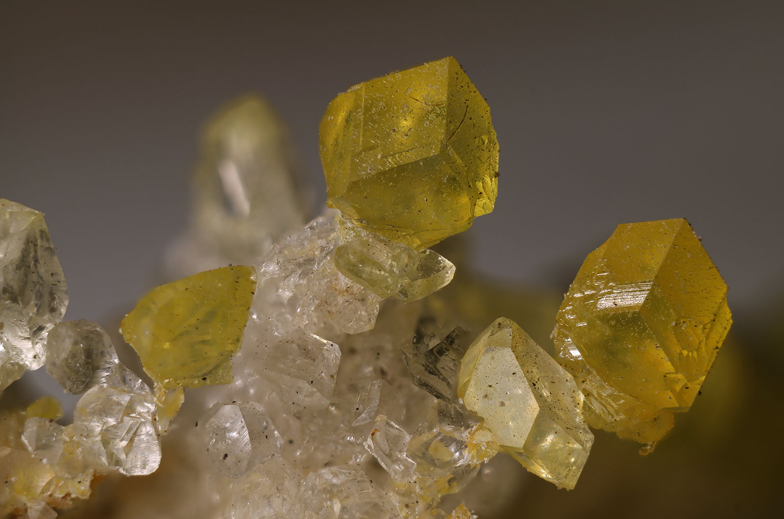 Die sicherlich häufigste Variante waren kompakte wasserklare xx, die zum Teil Kristallgrößen bis 1cm erreichten. Im Gegensatz dazu waren gelb gefärbte xx nicht ganz so häufig, dennoch konnten sie immer wieder geborgen werden.