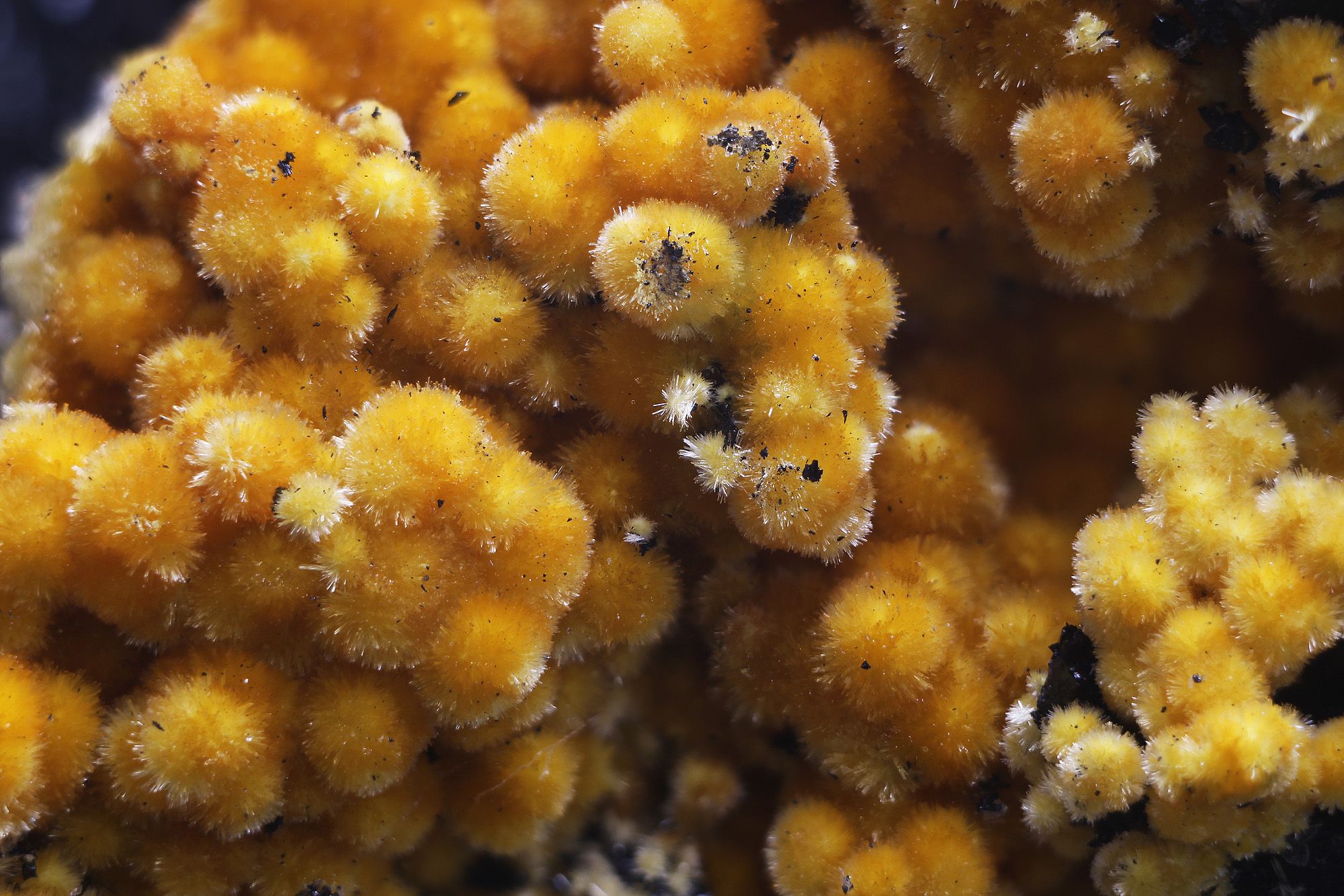 Sideronatrit, Zeche Zollverein, Essen Bildbreite ca.3 mm